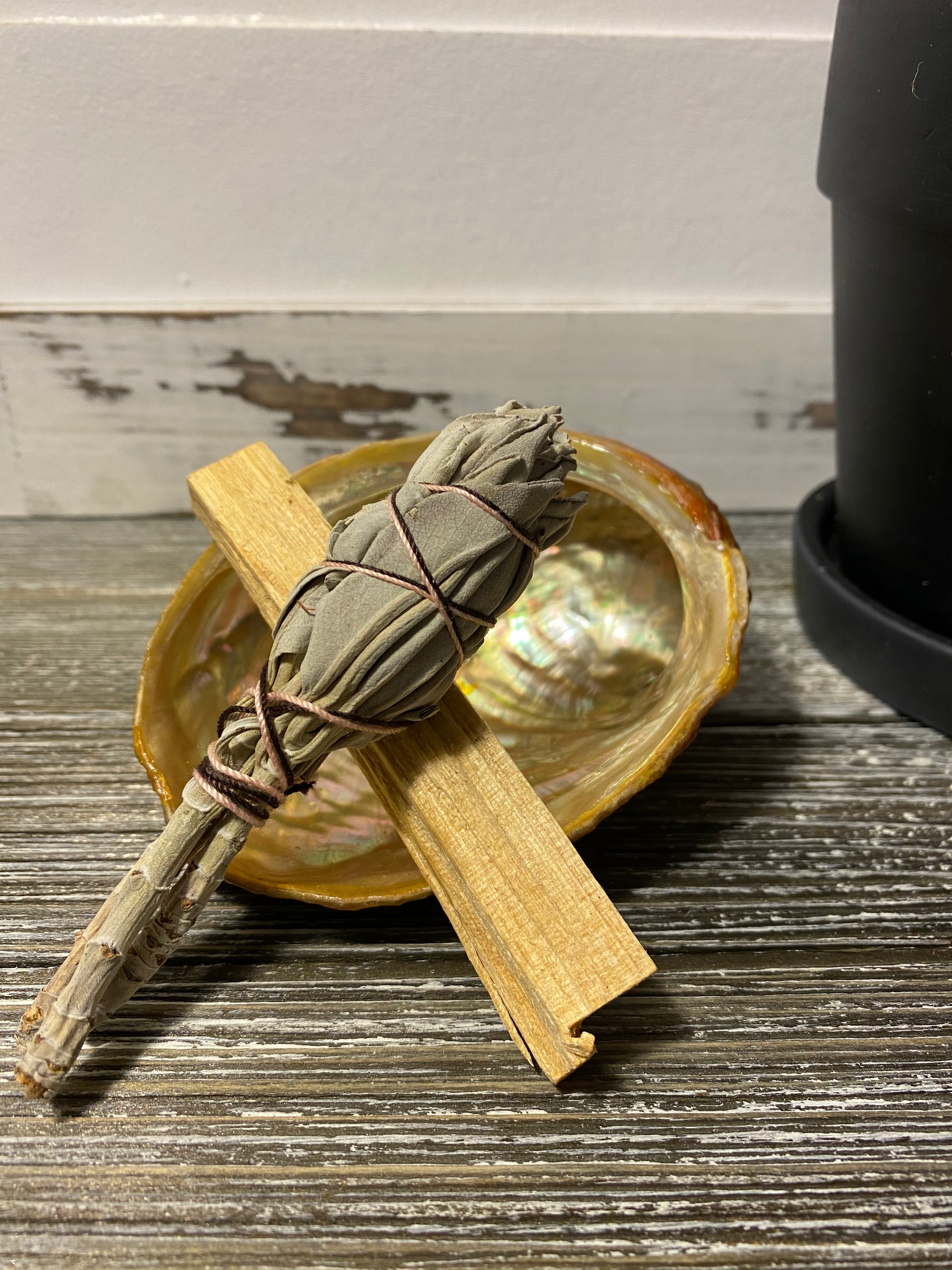 **Abalone Shell ONLY - Sage shown in picture are not included.** Smudge kits that include Abalone Shell and Sage are available for purchase on the website.