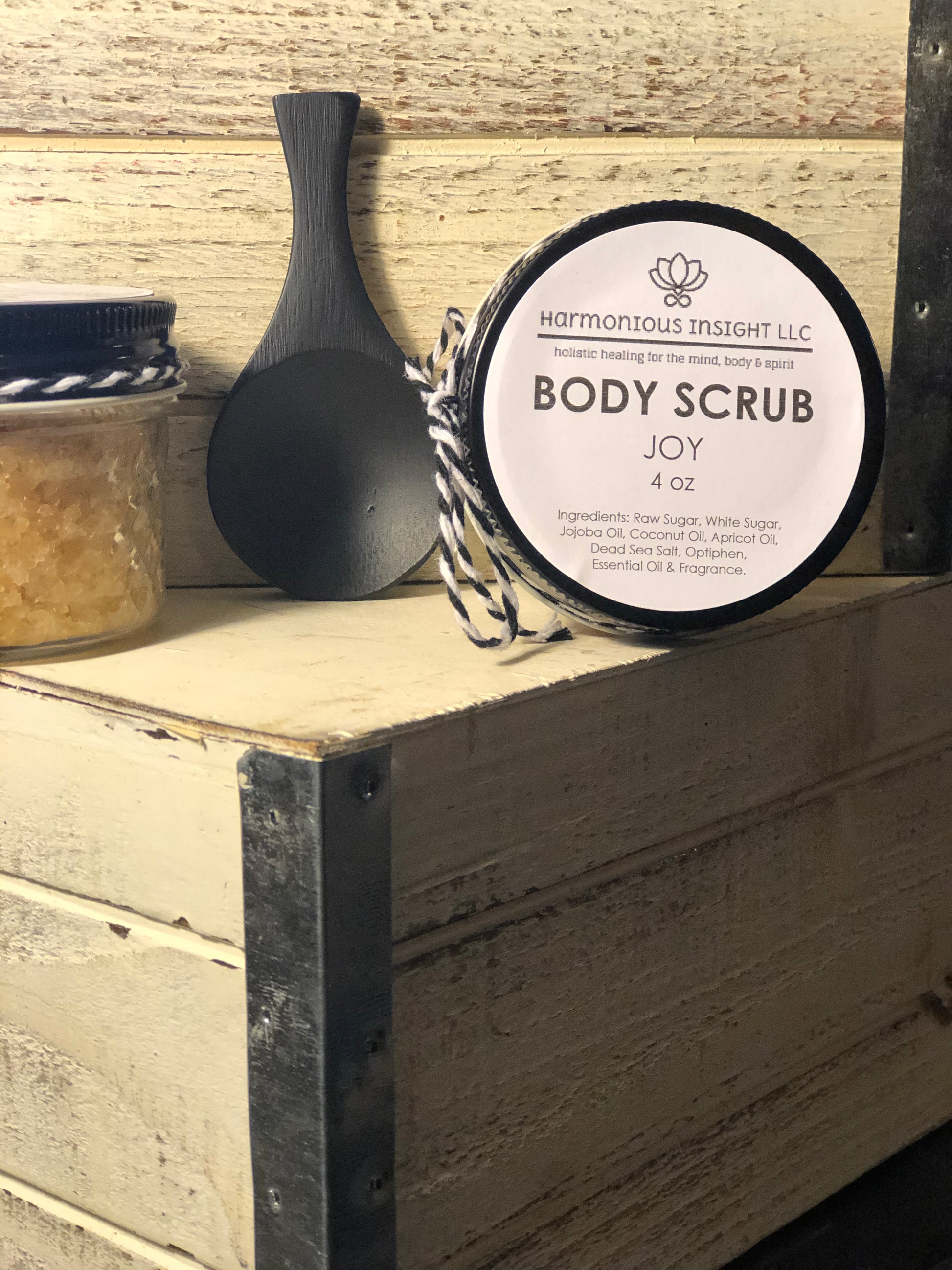 Sugar Scrubs are an excellent way to exfoliate and moisturize your skin which promotes healthy skin. JOY a luscious sweet scent of vanilla, almond and honey.