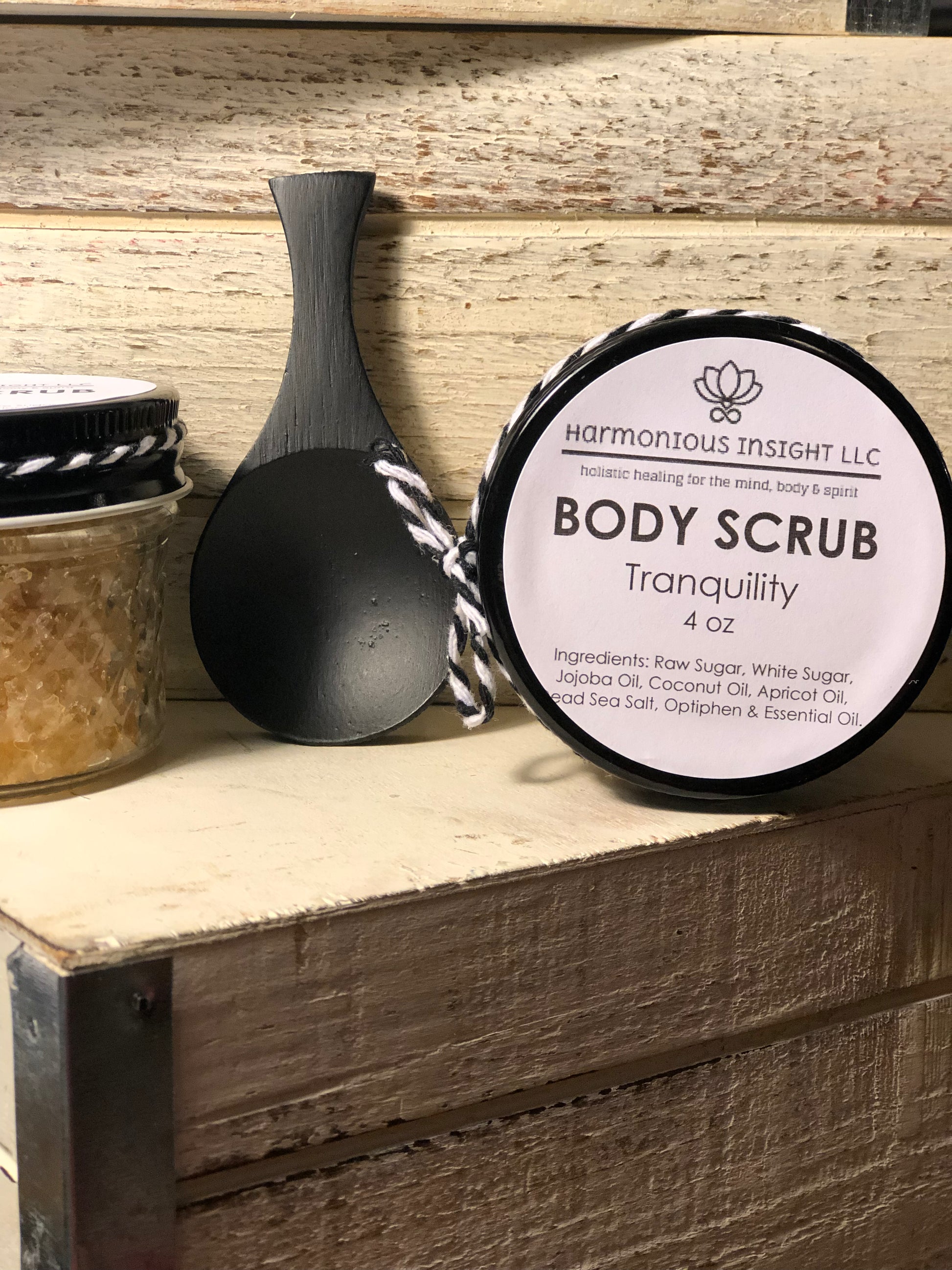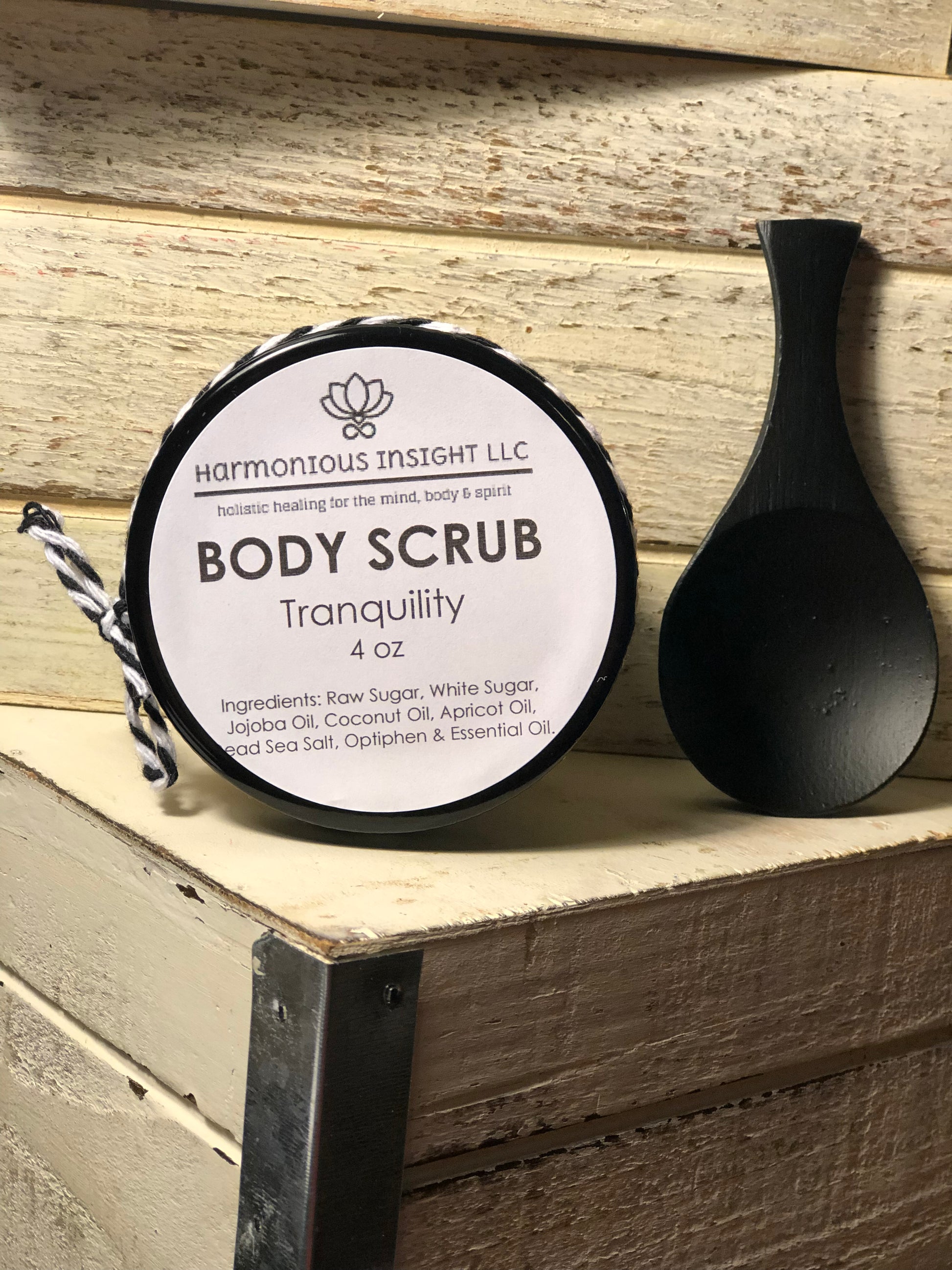 Ingredients: Raw Sugar, White Sugar, Jojoba Oil, Coconut Oil, Apricot Oil, Dead Sea Salt, Optiphen, Essential Oil & Fragrance.