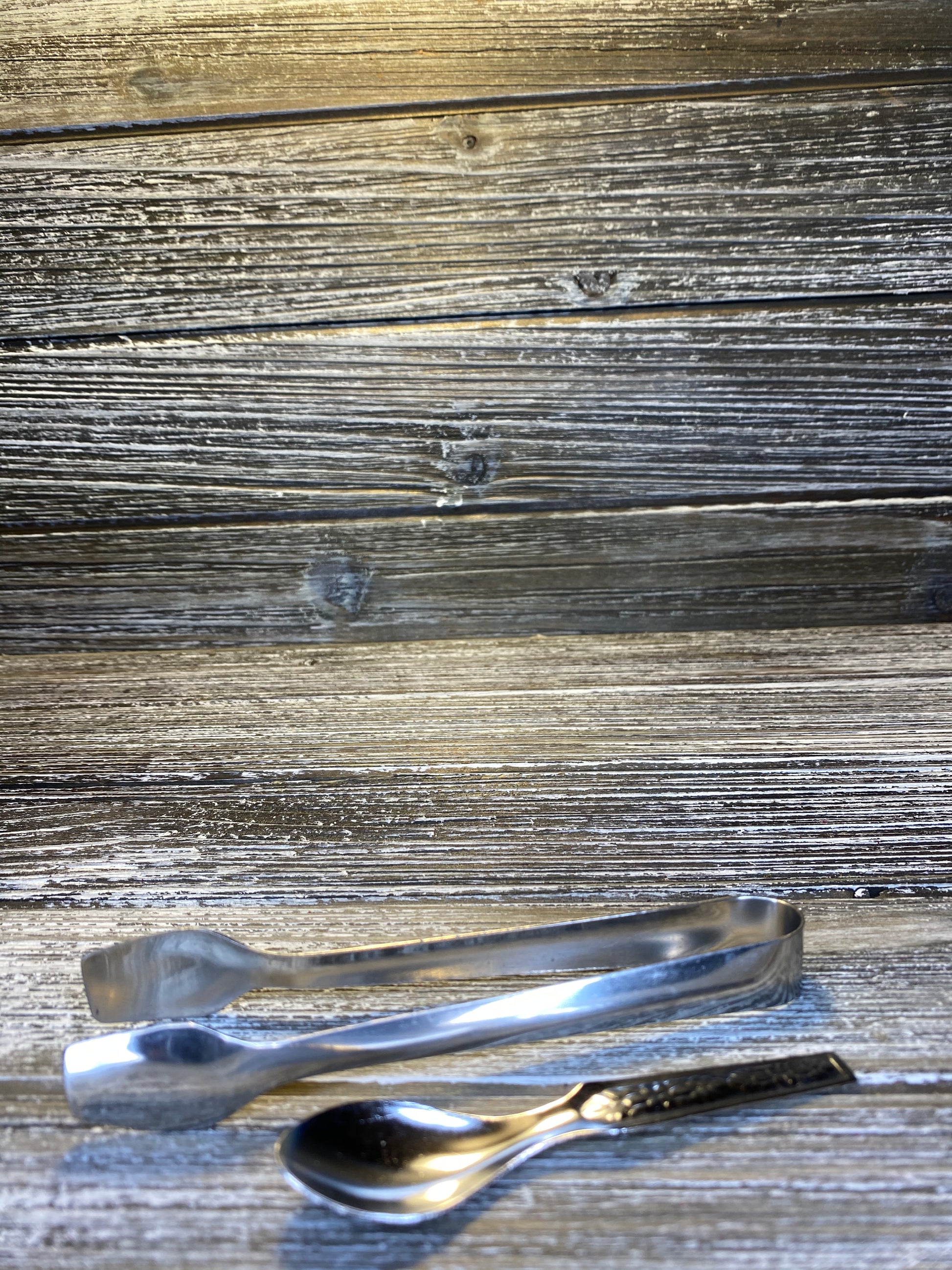 Metal tong and spoon set for use with resin, powder incense, and charcoal tablets.