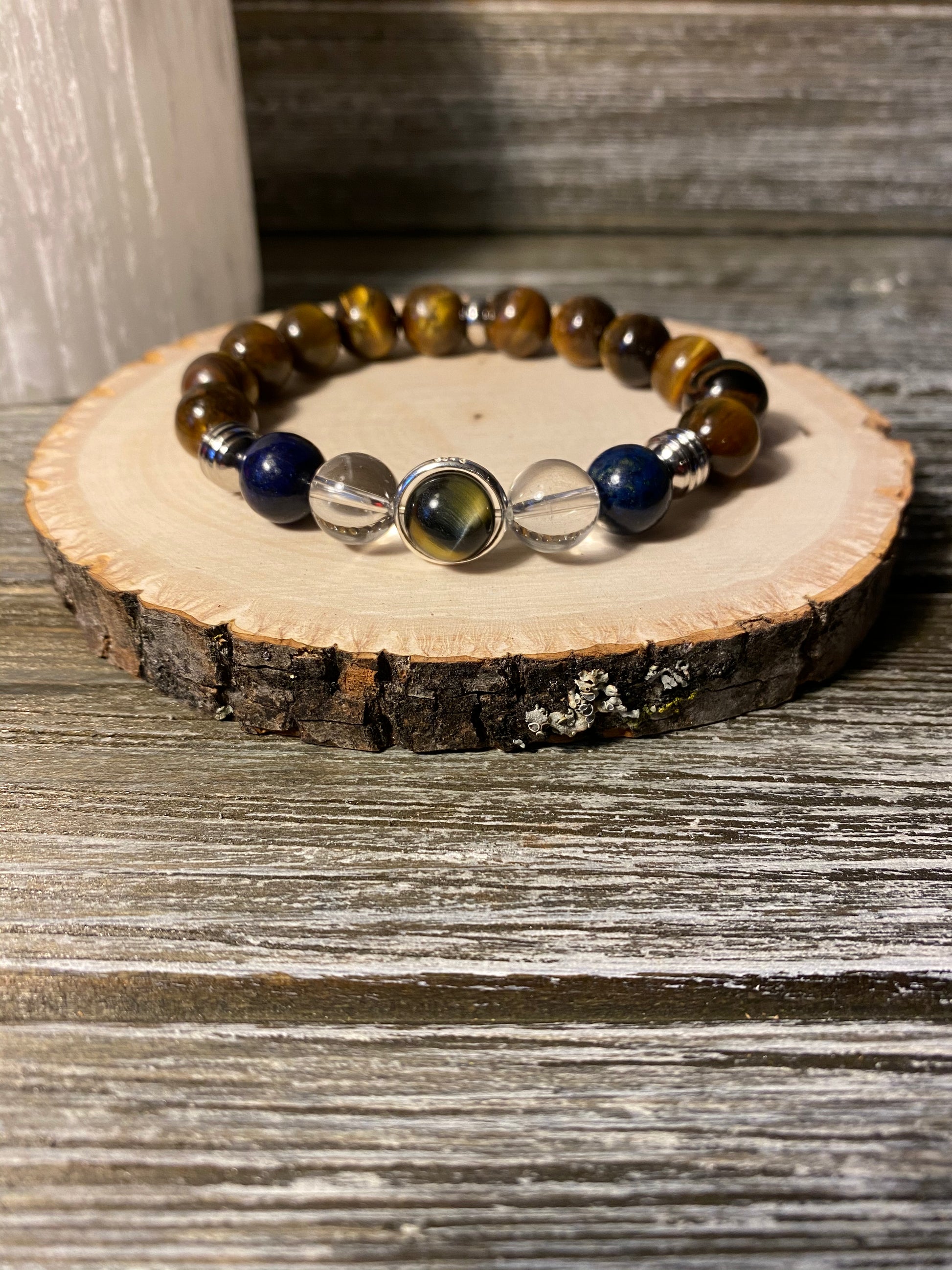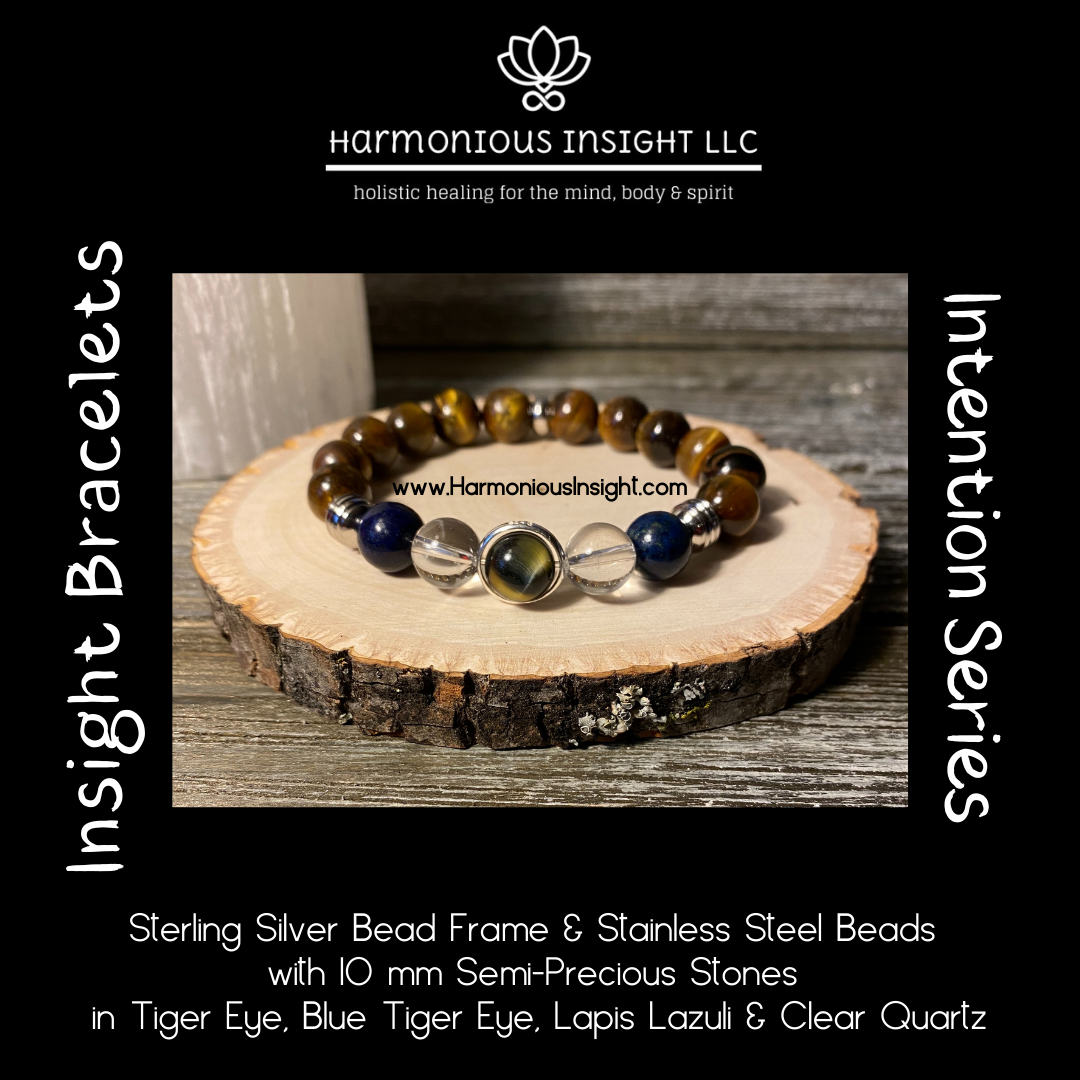Insight Bracelet - Sterling Silver Bead Frame with Tiger Eye, Blue Tiger Eye, Lapis Lazuli & Clear Quartz