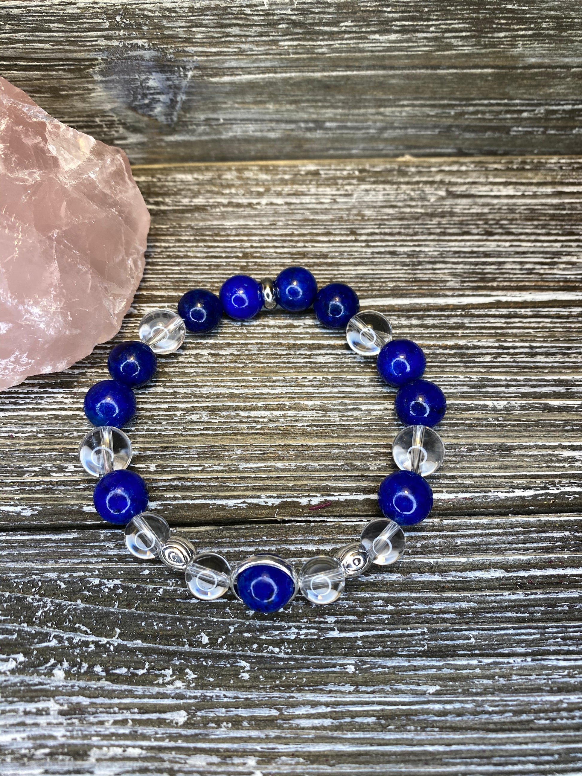 Sterling Silver EYE Imprint Beads & Bead Frame with 8 mm Semi-Precious Stones in Lapis Lazuli & Clear Quartz.