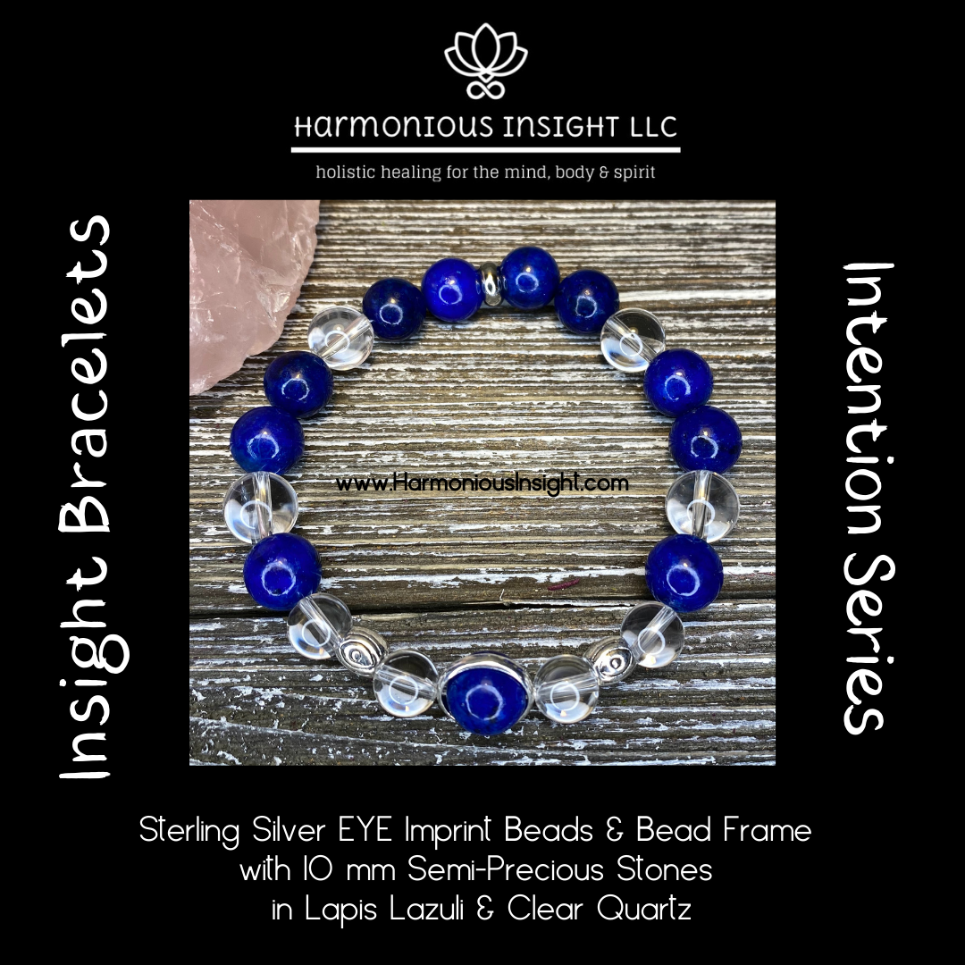 Insight Bracelet - Sterling Silver Eye Imprint Beads and Bead Frames with Lapis Lazuli and Clear Quartz