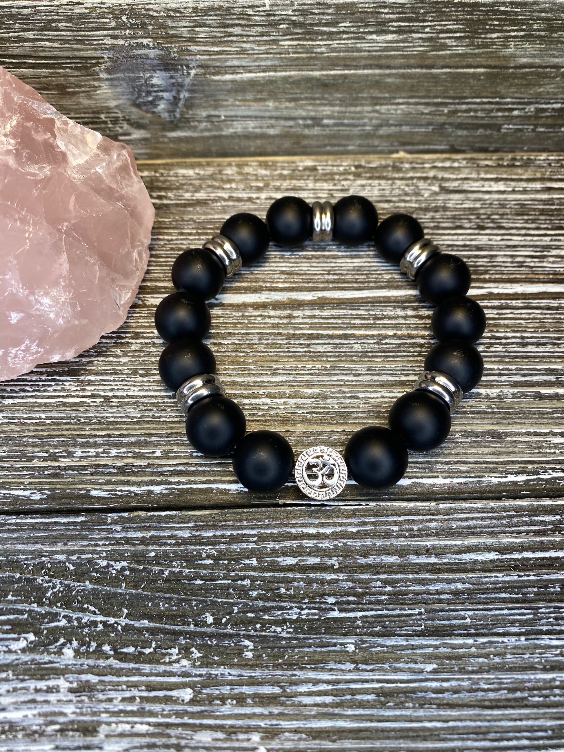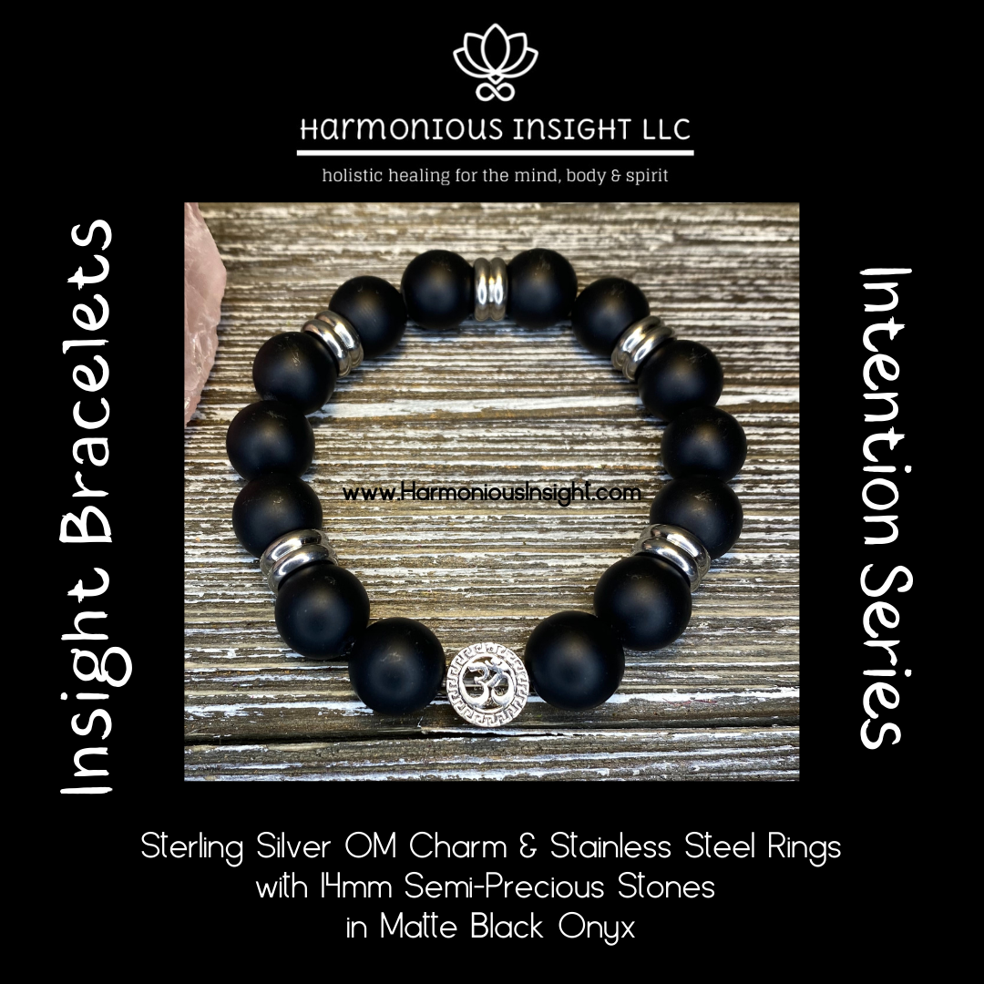 Insight Bracelet - Sterling Silver OM Charm with Matte Onyx