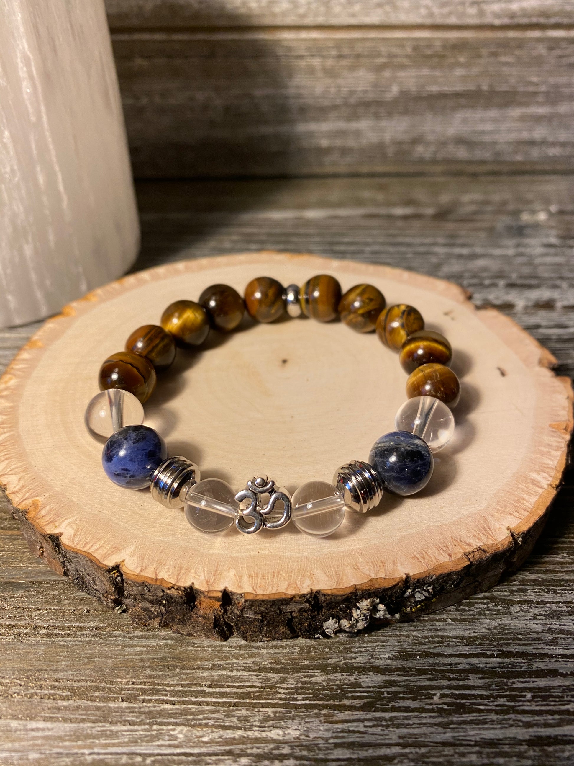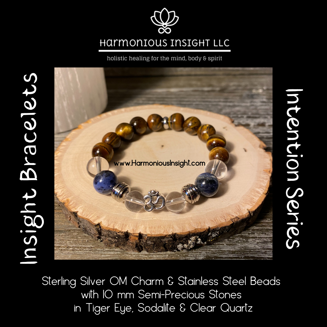 Insight Bracelet - Sterling Silver OM Charm with Tiger Eye, Sodalite and Clear Quartz