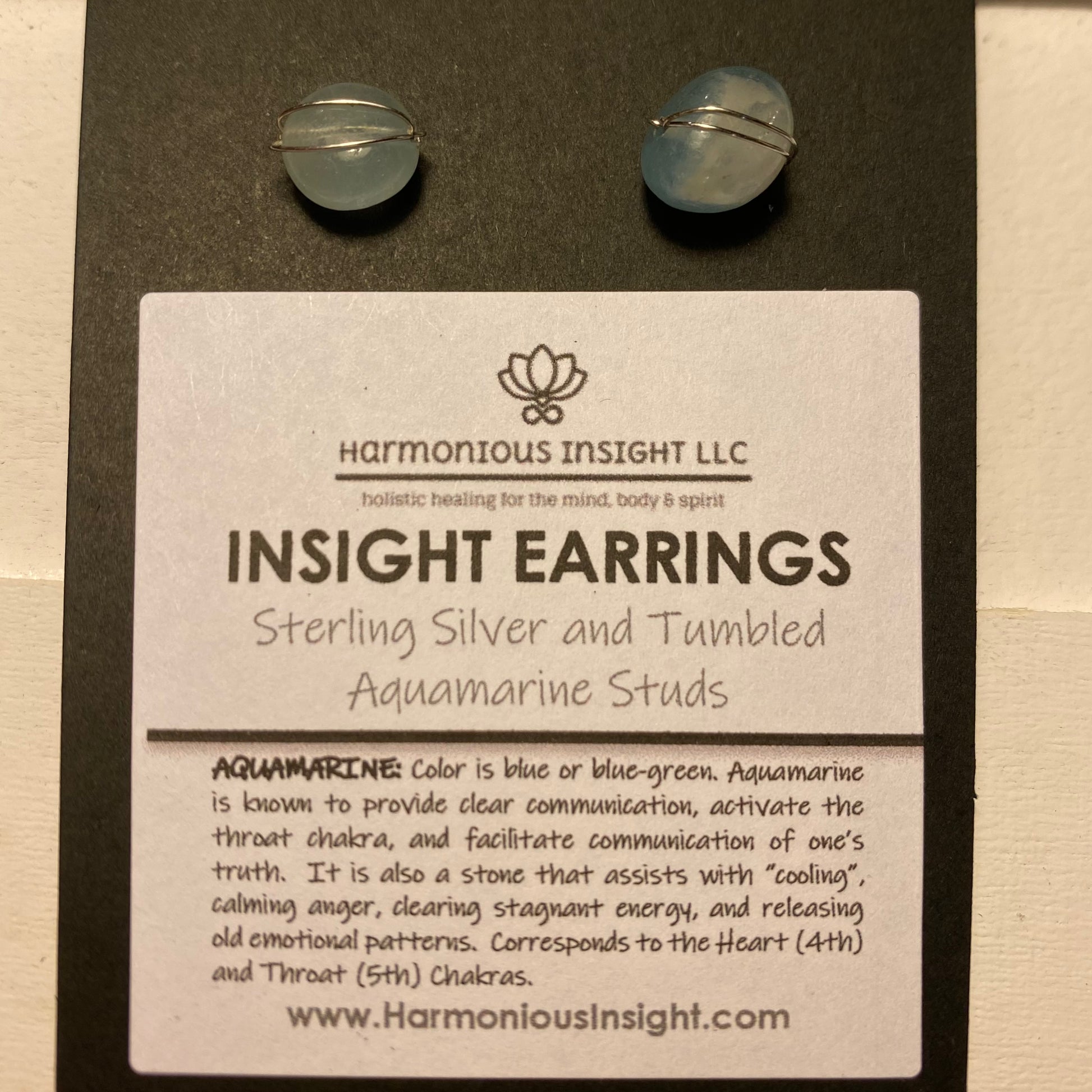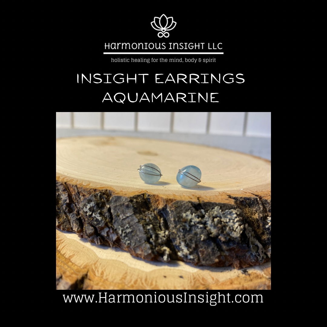 INSIGHT Earrings are semi-precious tumbled stone/crystal stud earrings wrapped in sterling silver. The semi-precious stones/crystals are meant to support the wearers insightful intentions.