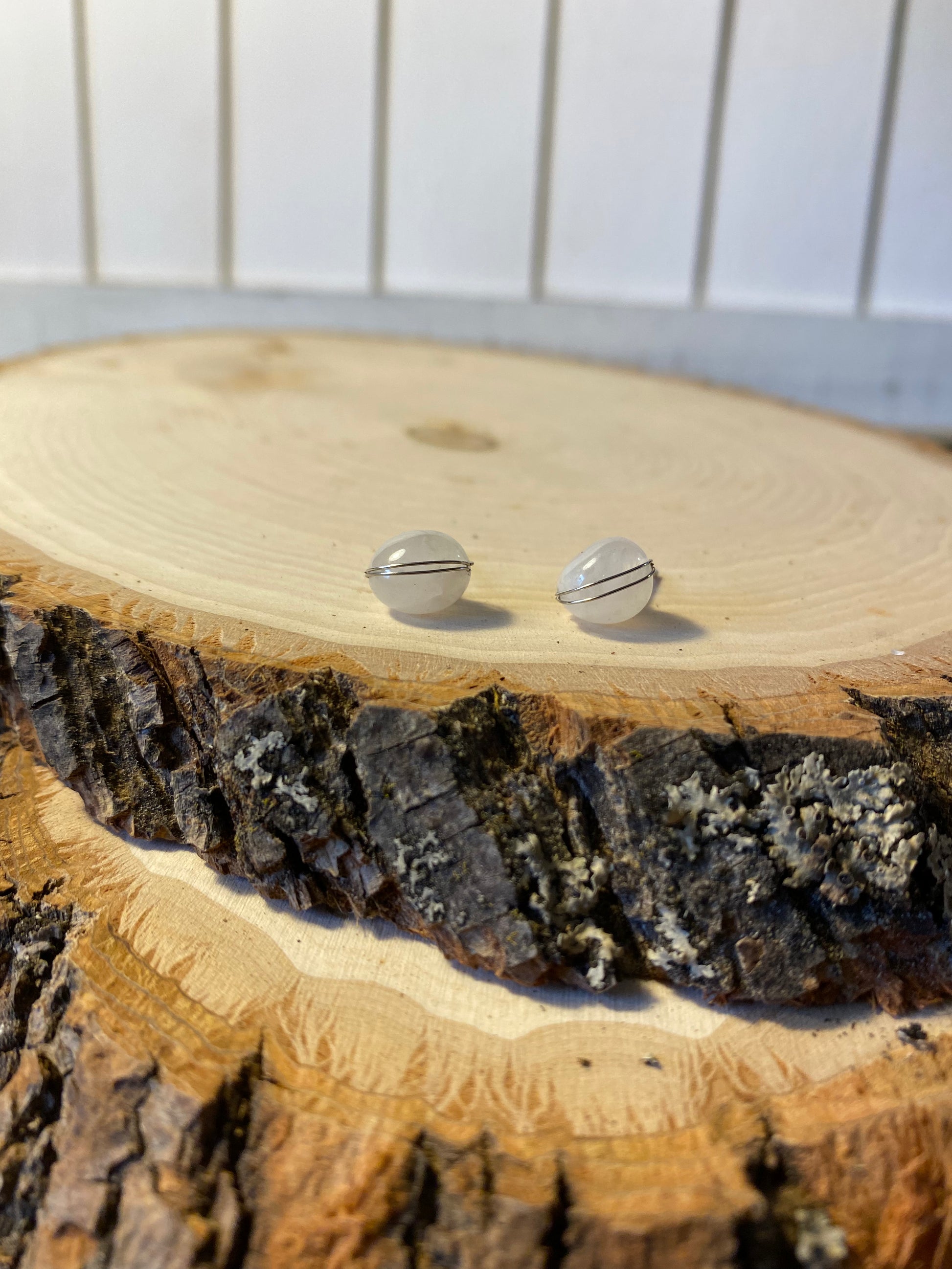 INSIGHT Earrings are semi-precious tumbled stone/crystal stud earrings wrapped in sterling silver. The semi-precious stones/crystals are meant to support the wearers insightful intentions.