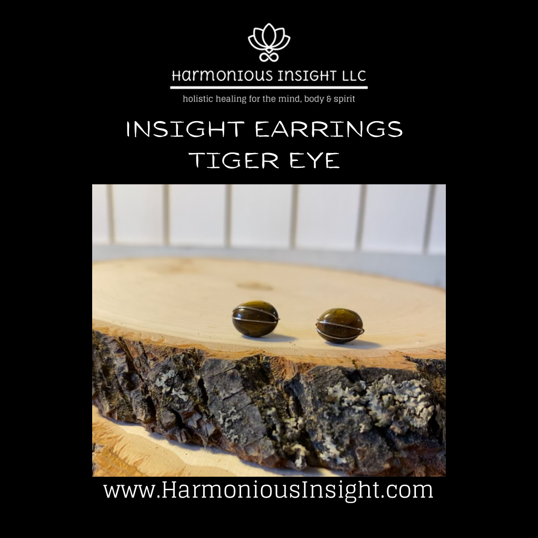 INSIGHT Earrings are semi-precious tumbled stone/crystal stud earrings wrapped in sterling silver. The semi-precious stones/crystals are meant to support the wearers insightful intentions.