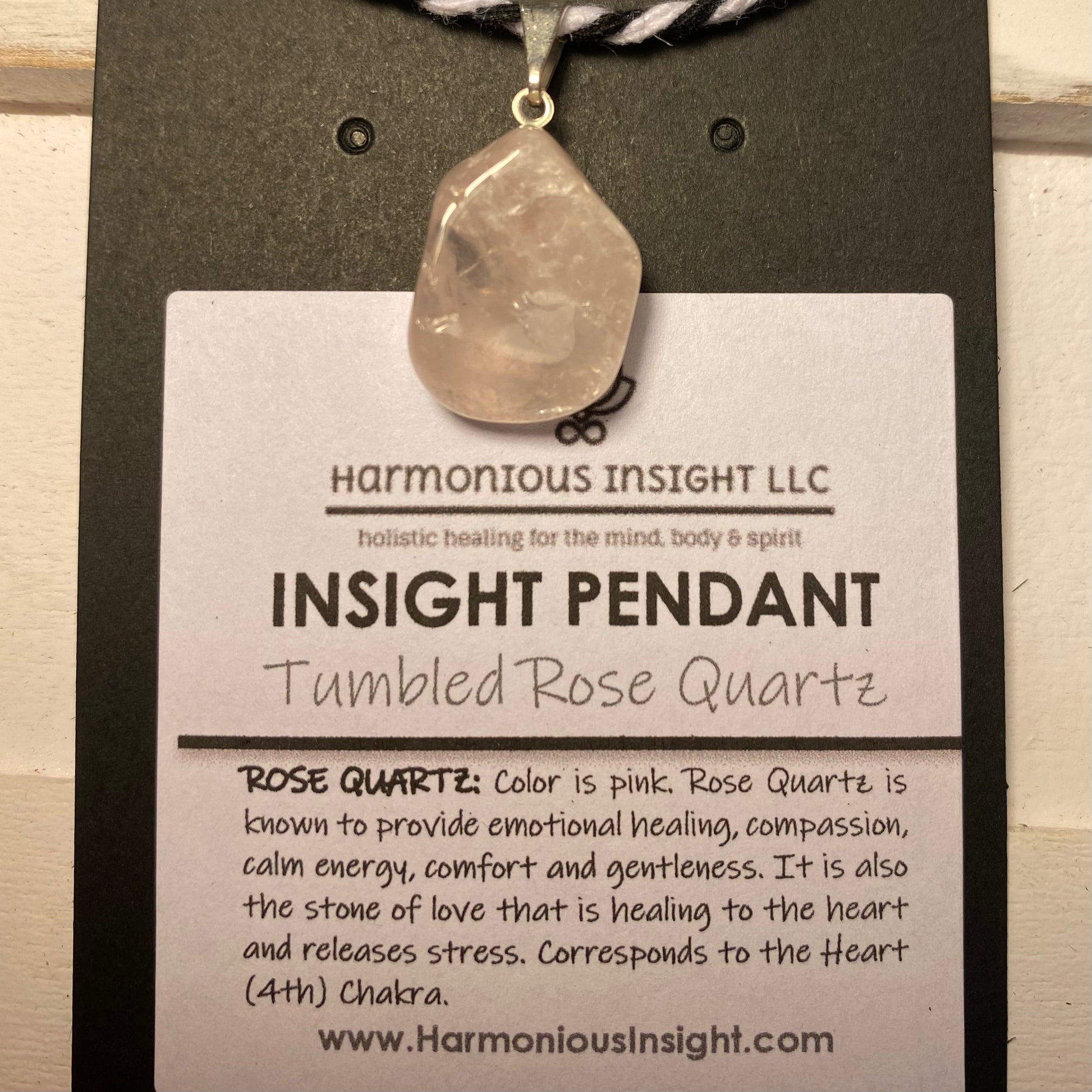 INSIGHT Pendants are semi-precious tumbled stones/crystals. The semi-precious stones/crystals are meant to support the wearers insightful intentions. Pendants vary in shape and size due to the natural tumbled stone/crystal. Tumbled stone/crystal size is between 10 - 20 mm.