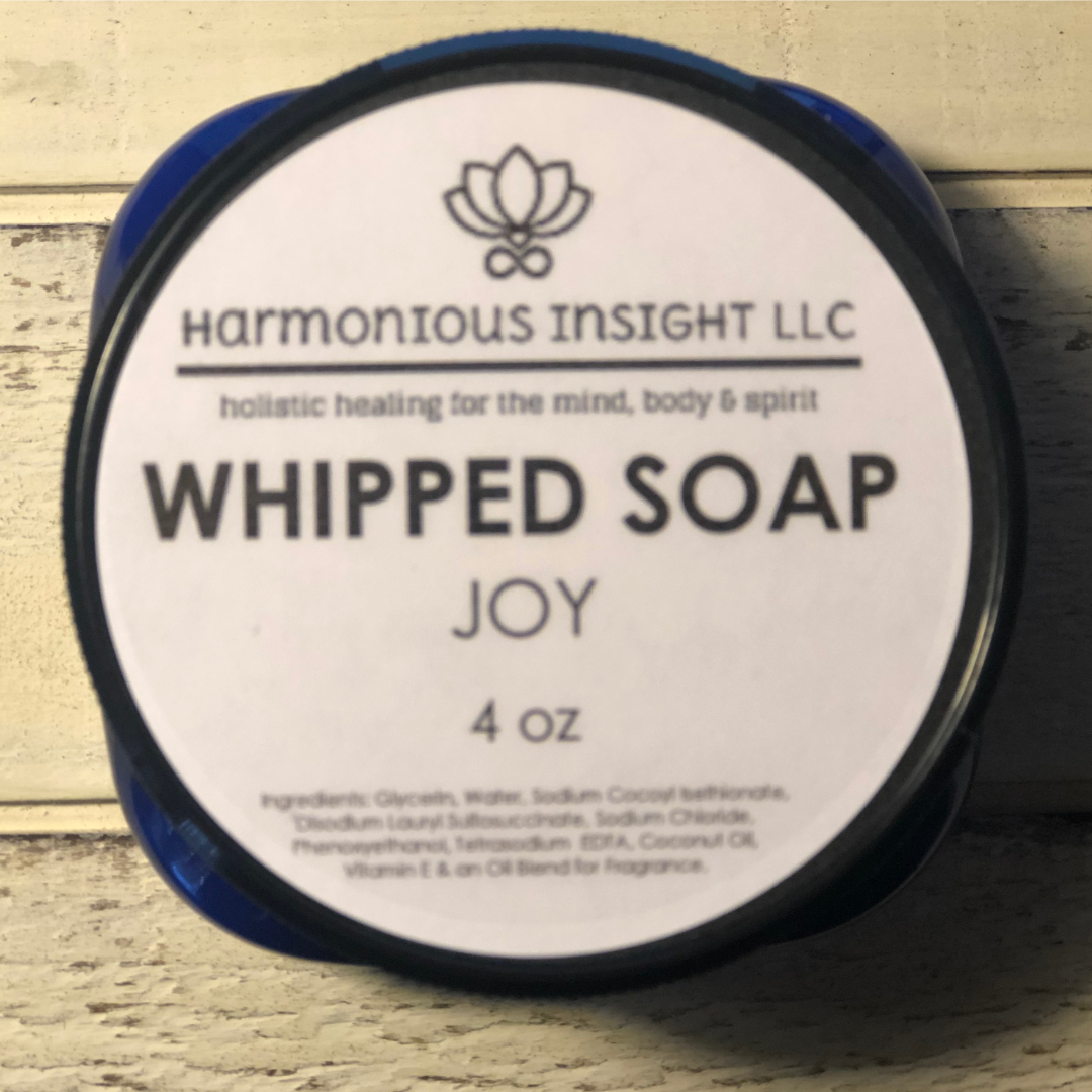 Whipped Soaps are a foaming bath butter that add a pampering element to your bathing routine! JOY a luscious sweet scent of vanilla, almond and honey.
