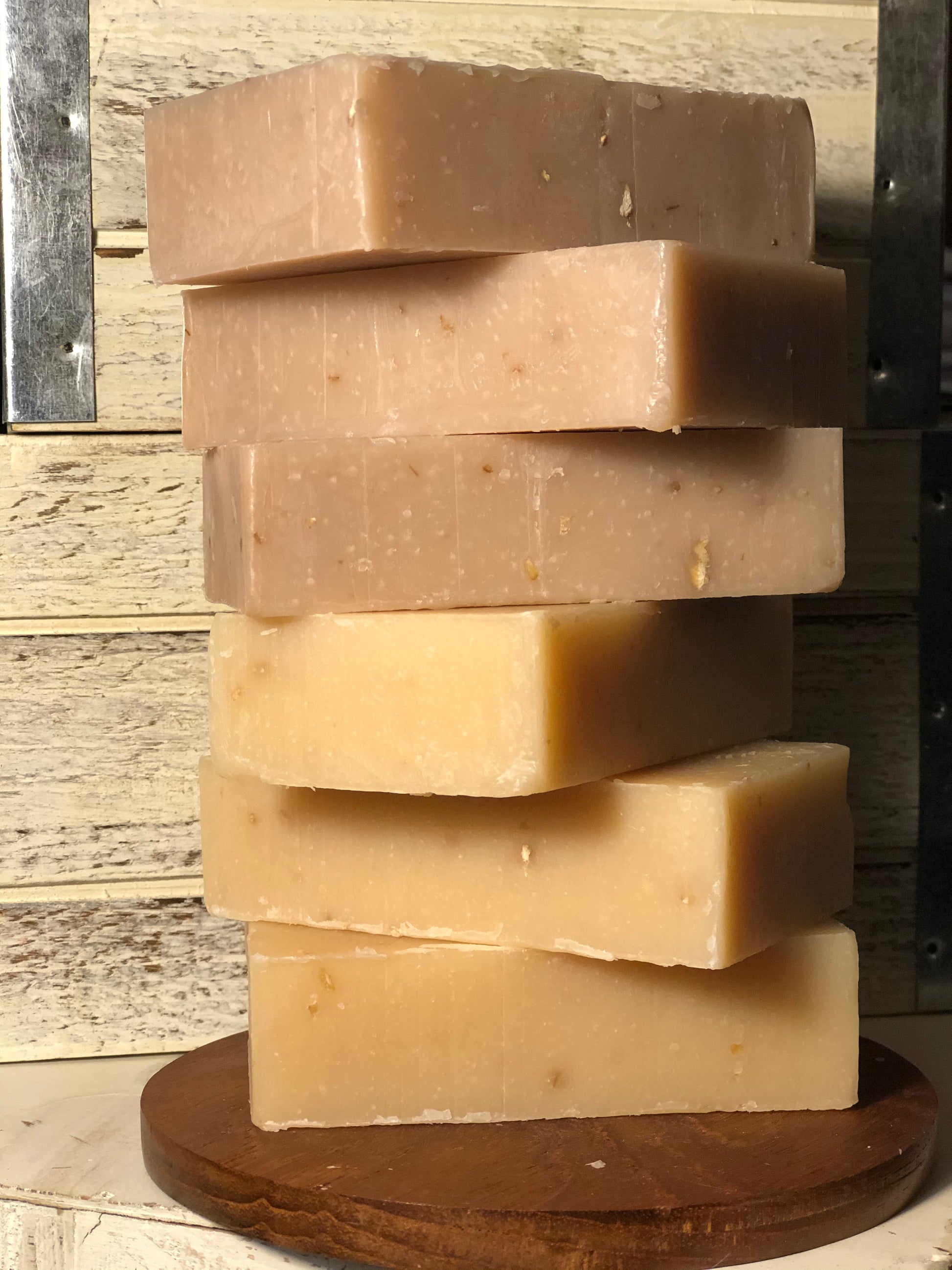 Ingredients: Olive Oil, Soybean Oil, Coconut Oil, Corn Oil, Sunflower Oil, Organic Shea Butter, Water, Sodium Hydroxide (Lye), Fragrance OIl, and Ground Oatmeal.