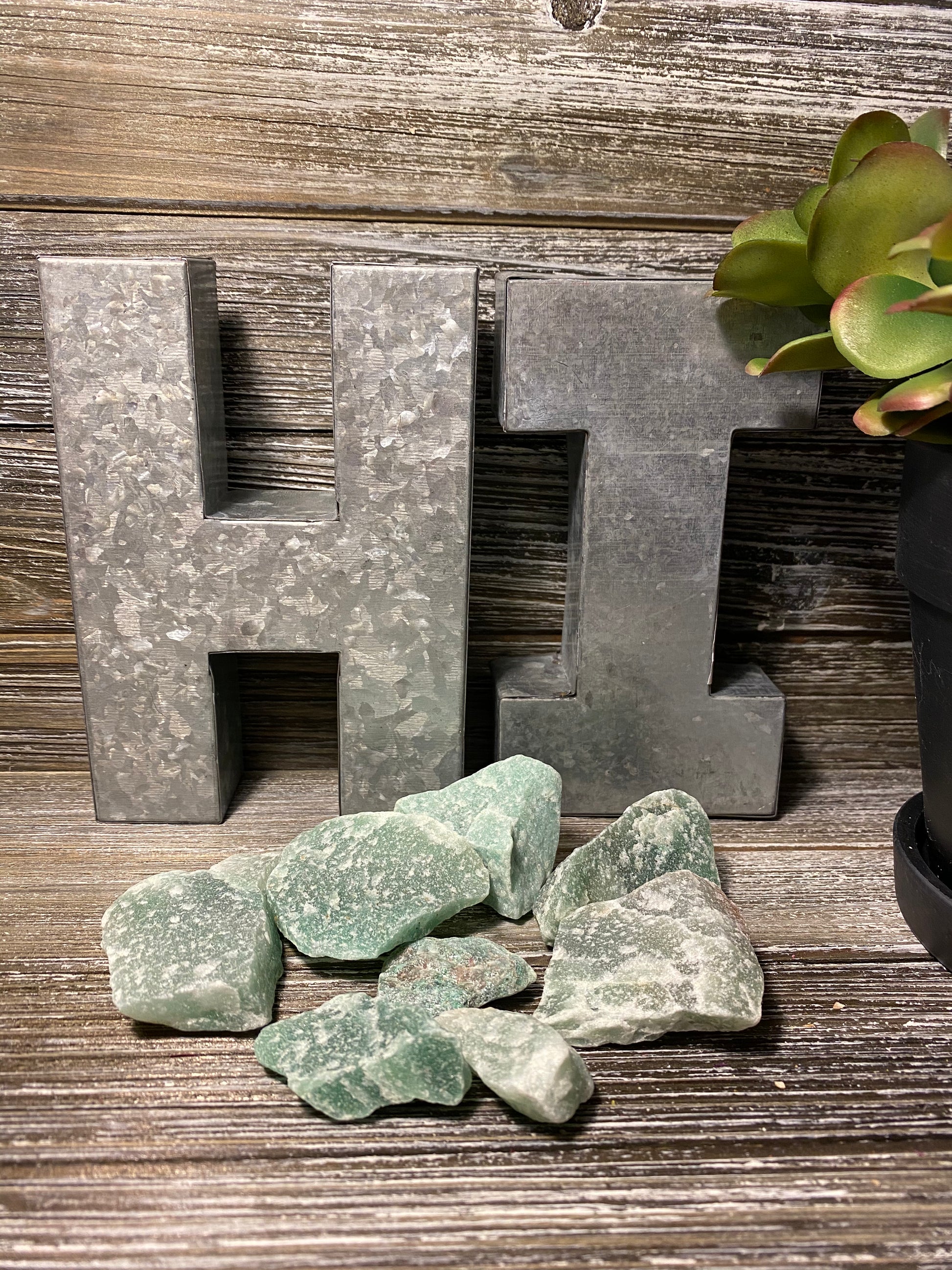 GREEN AVENTURINE: Color is green. Green Aventurine is known to provide confidence, growth, hope, optimism and zest for life. It is also a stone to loosen and release negativity and energy blockages. Corresponds to the Heart (4th) Chakra.