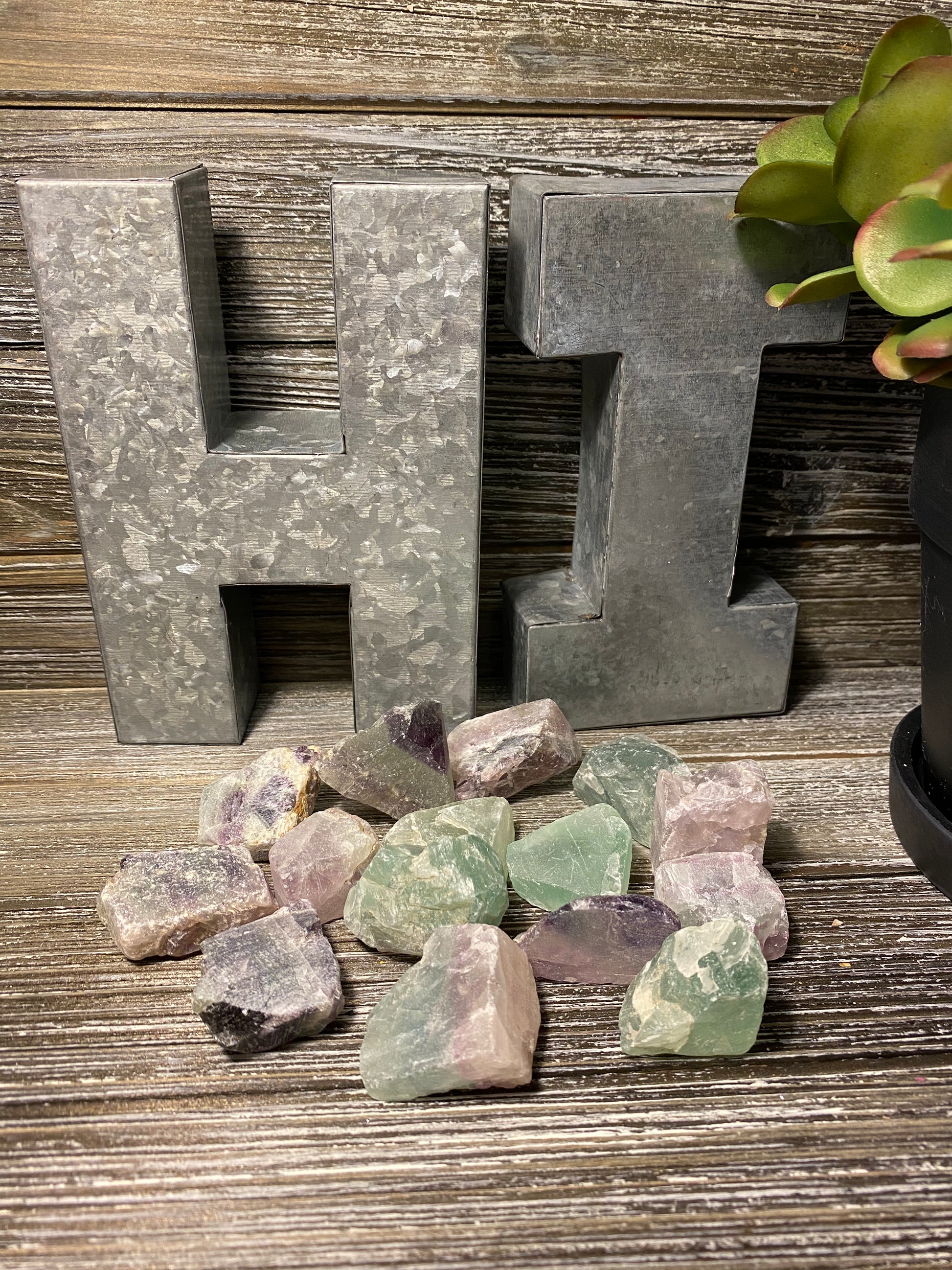 FLUORITE: Color range includes green, purple, pink, red, yellow and white. Fluorite is known for mental enhancement and clarity, clearing energy fields, and strengthening one’s ability to receive psychic information. It also assists with improving decision-making, overcoming fear of the future and acts as a psychic vacuum cleaner. Corresponds to all Chakras.