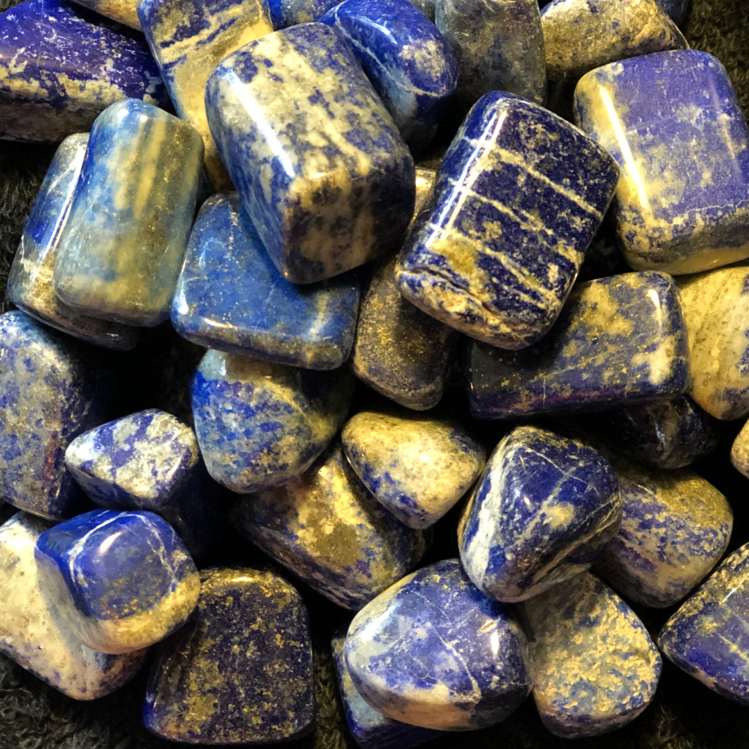 LAPIS LAZULI: Color is blue. Lapis Lazuli is known to provide inner vision, truthful communication and spiritual enlightenment. It is also a stone that increases awareness and wisdom. Corresponds to the Third Eye (6th) and Throat (5th) Chakras.