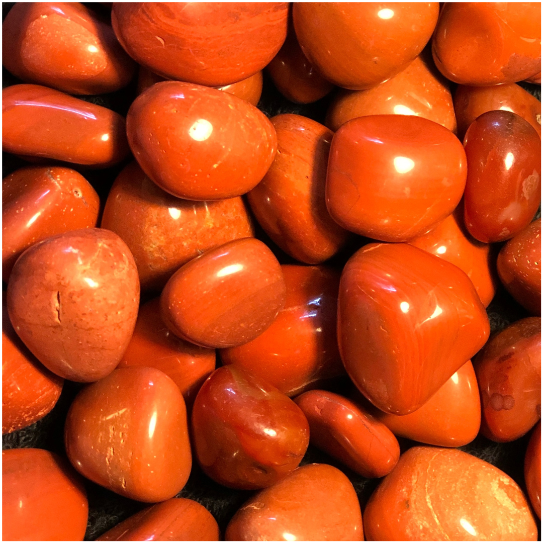 RED JASPER: Color is red. Red Jasper is known to provide vitality, endurance, stamina, stabilization of one’s energies and to increase chi (life force) in one’s energetic field. It is also a stone to help release shame or guilt around sexual issues. Corresponds to the Root (1st) and Sexual/Creative (2nd) Chakras.