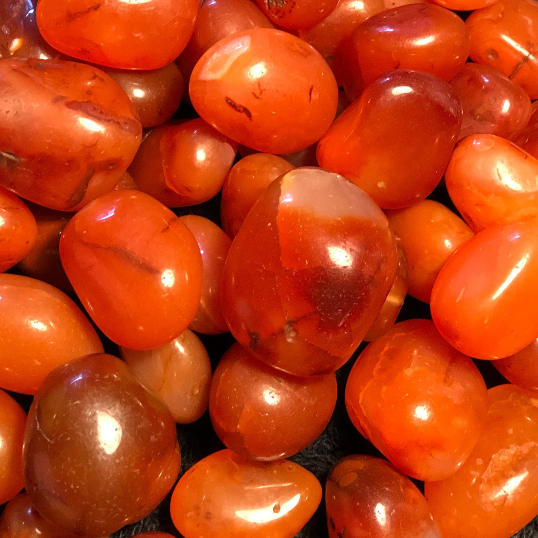 CARNELIAN: Color is orange. Carnelian is known to provide courage, vitality, sexuality and confidence. It is also a stone to assist with embracing change, manifesting goals, overcoming fear and transformation in life. Corresponds to the Root (1st), Sexual/Creative (2nd) and Solar Plexus (3rd) Chakras.