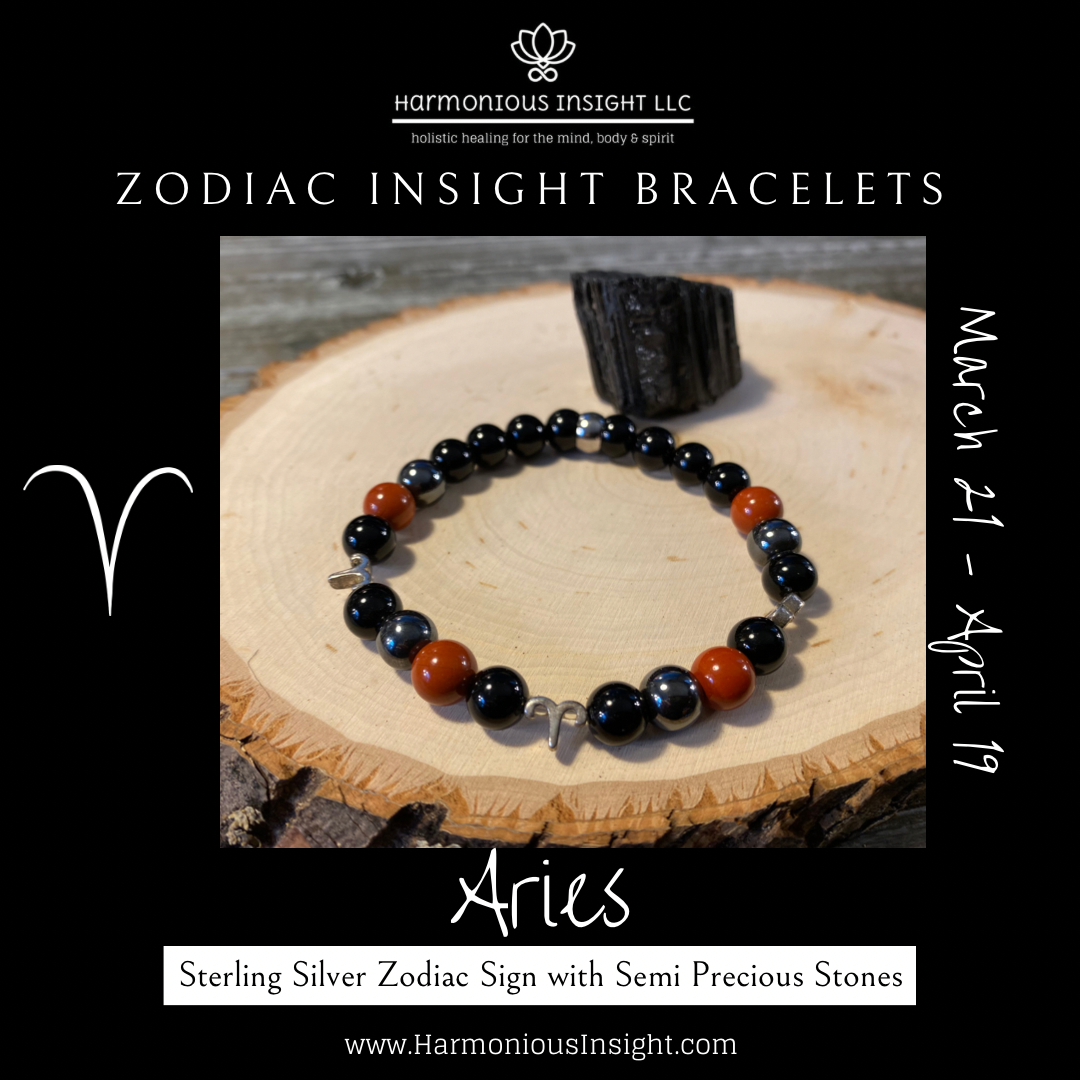 Aries (Ram) is the zodiacal constellation that represents the dates of March 21st - April 19th. These dates correlate with the Sun’s passage through this constellation. The astrological element for the Zodiac Sign of Aries is fire. This Zodiac Insight Bracelet contains three Sterling Silver Aries Charms with 8 mm Semi-Precious Stones in Red Jasper, Hematite, and Black Jasper. The bracelet circumference is approximately 8.25 inches. Please contact Harmonious Insight directly if you need an adjustment in size.